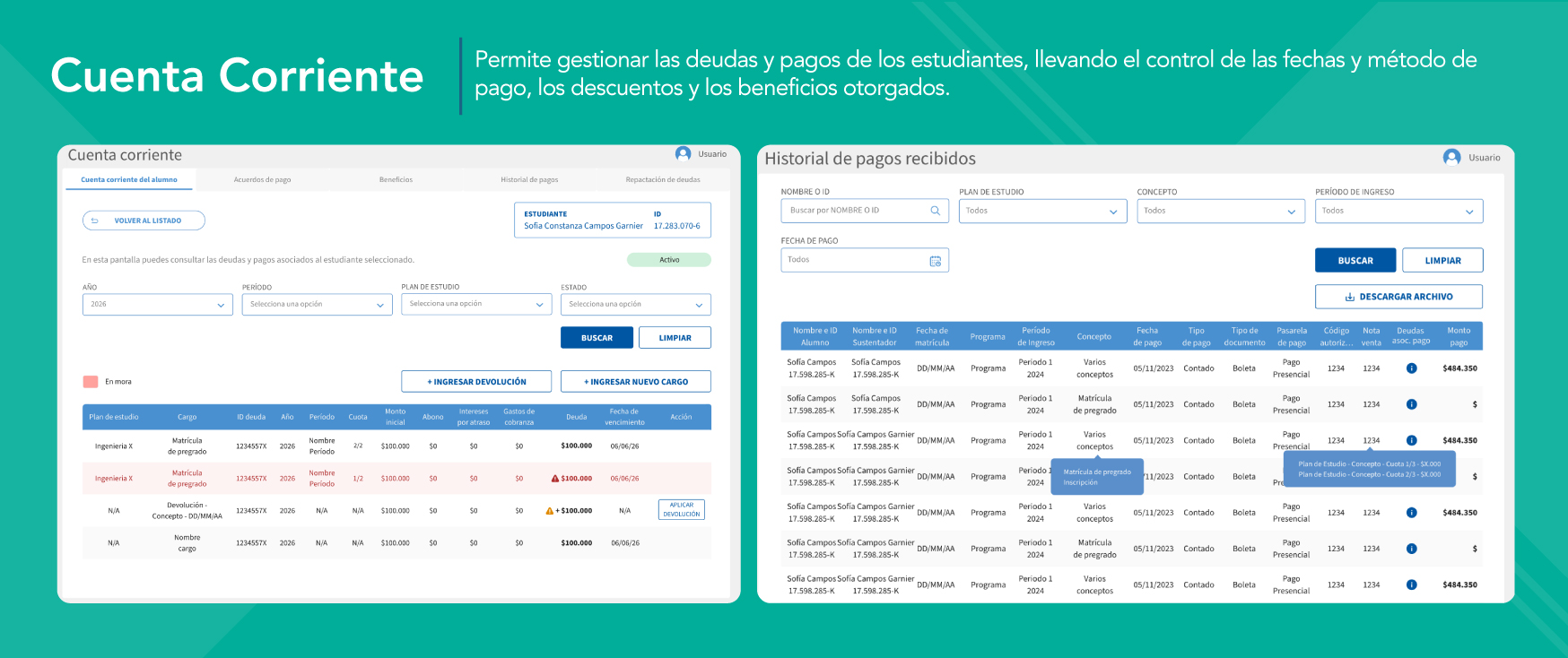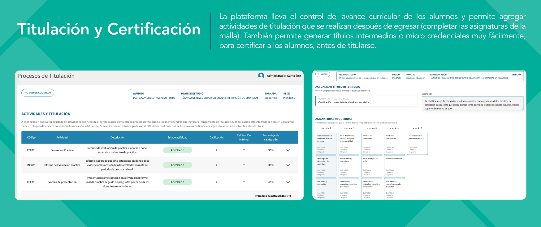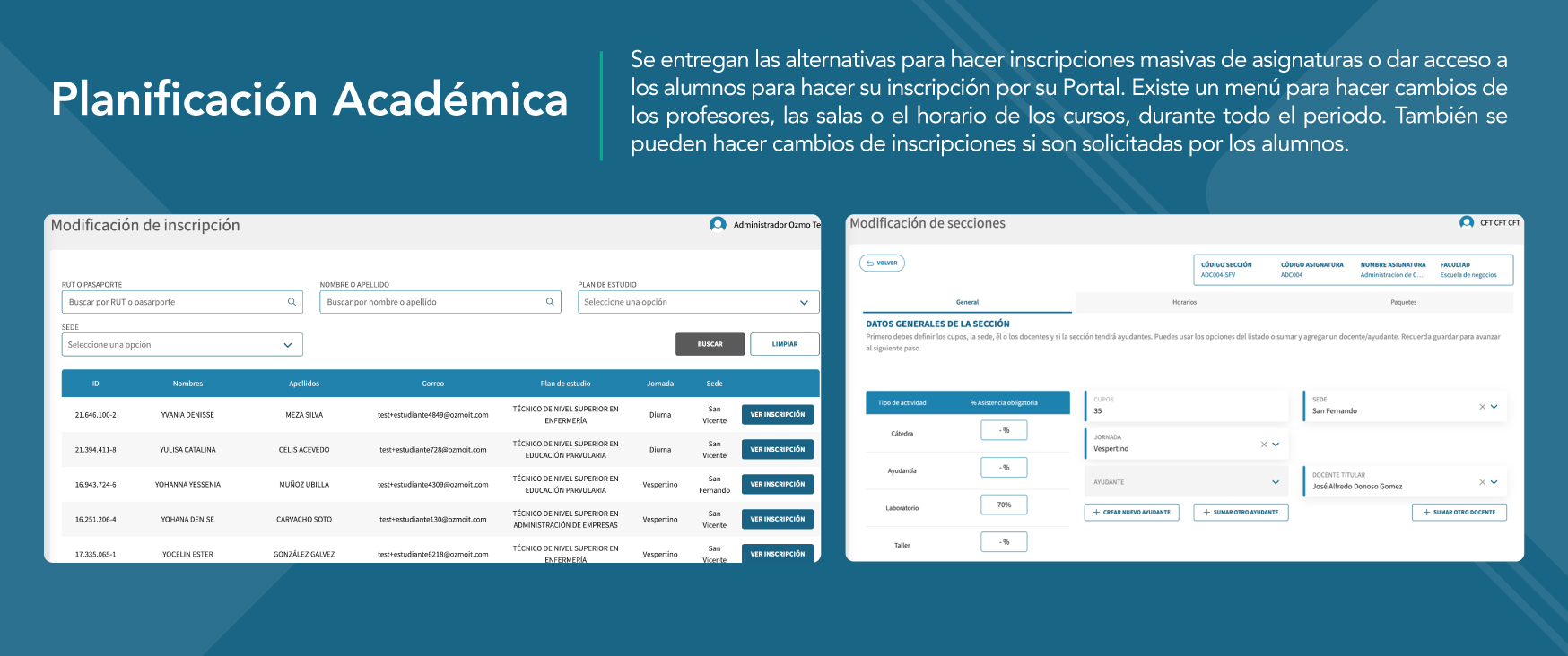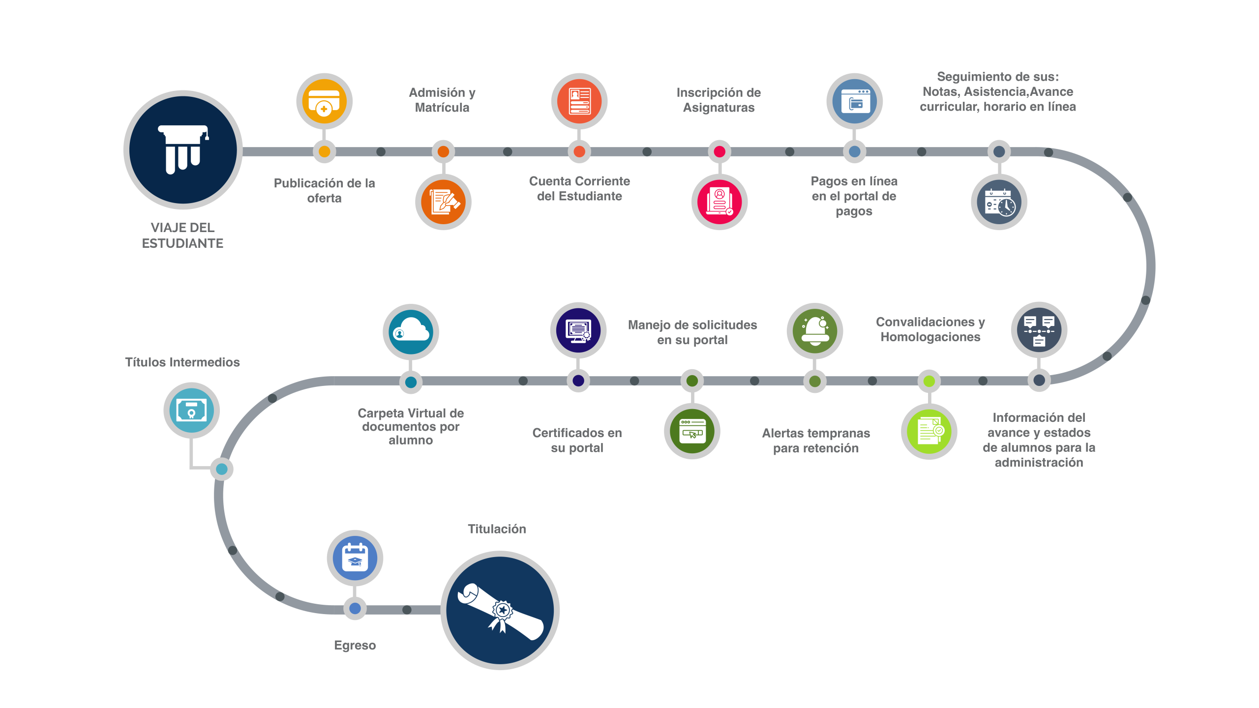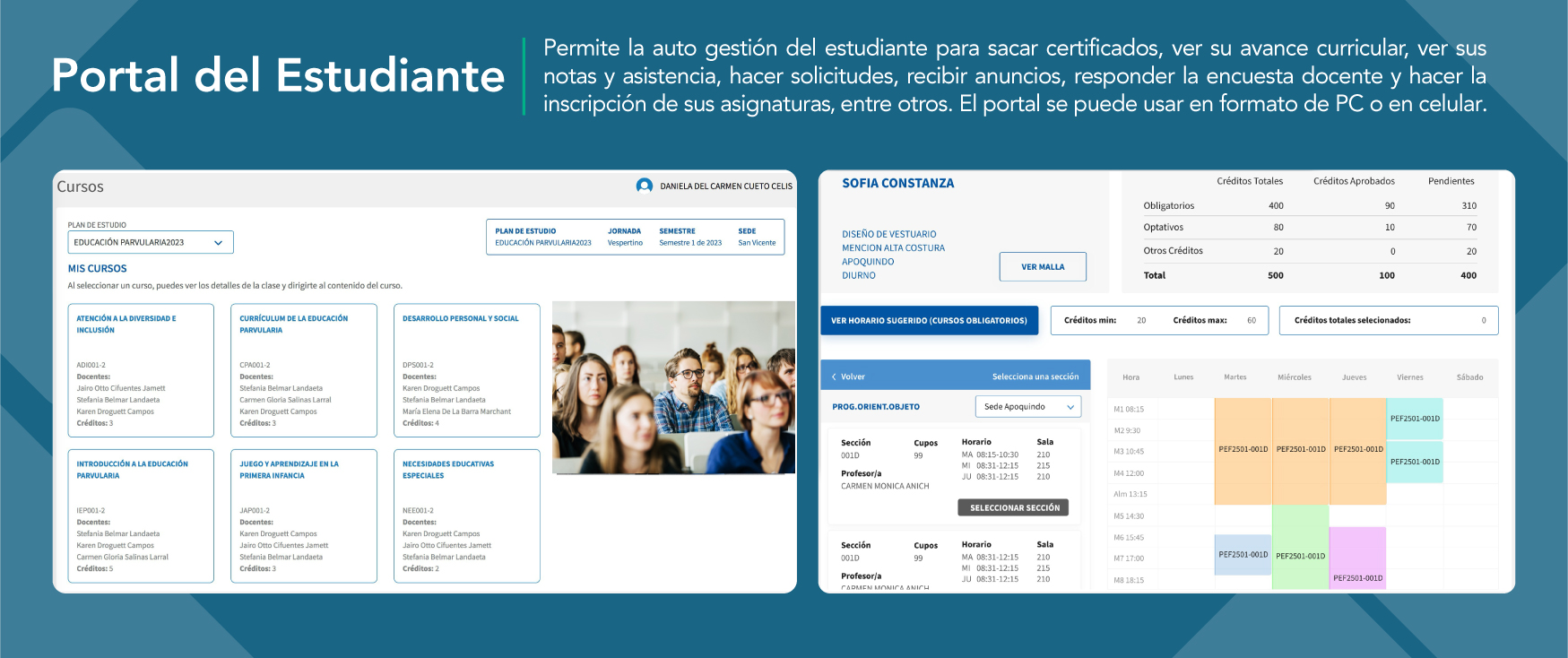 100% pensado para los estudiantes. Desde el portal del estudiante, los usuarios pueden consultar información sobre sus cursos, su avance curricular e incluso matricularse.